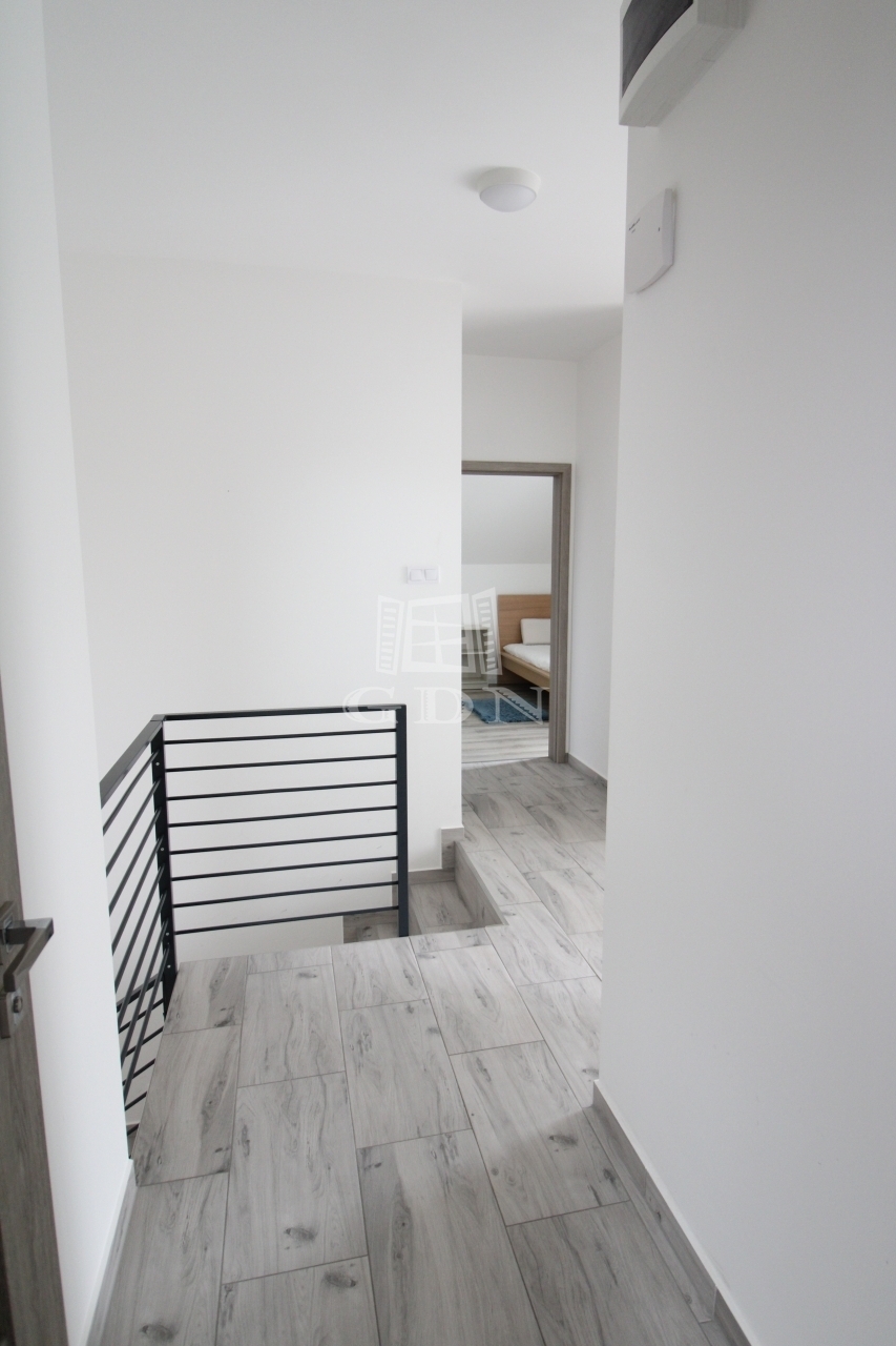 Felső szintre kényelmes fokkiosztású stabil lépcsőn és világos lépcsőházon keresztül juthatunk fel. Ezen a szinten egy 22nm (hasznos 19,8nm) szoba és két félszoba 11,8nm (hasznos9,24nm), 8,9nm (hasznos 6,53nm), 8,75nm-es fürdőszoba, 2,75nm illemhely, illetve 10,6nm közlekedő lett kialakítva. A közlekedőből juthatunk fel a 30nm nagyságú padlásra.